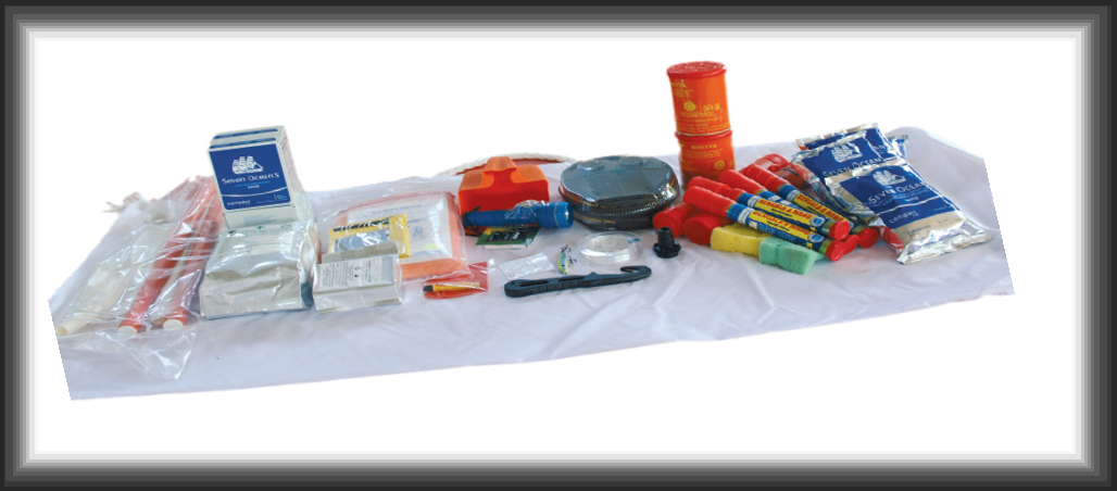 All’nterno della zattera è collocato un contenitore stagno con l’equipaggiamento standard che può variare in base al paese di riferimento